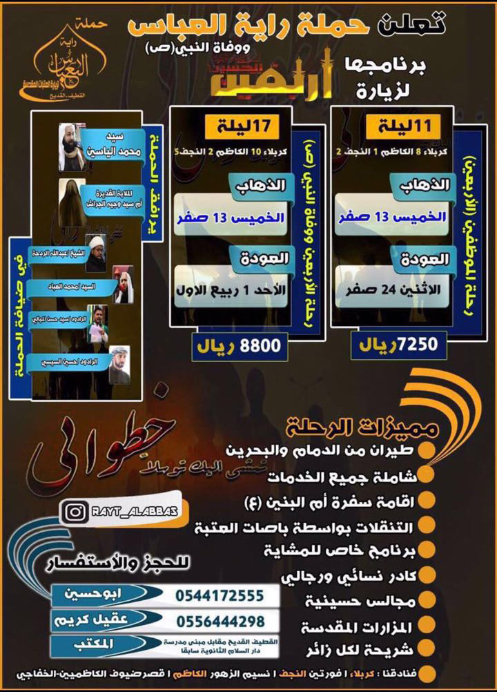 تعلن حملة راية العباس عن برنامجها لزيارة الأربعين و وفاة النبي ﷺ
