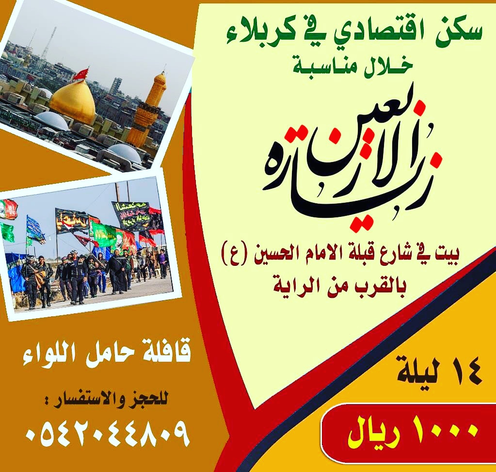 احجز سكنك في كربلاء المقدسة لزيارة الأربعين مع قافلة حامل اللواء