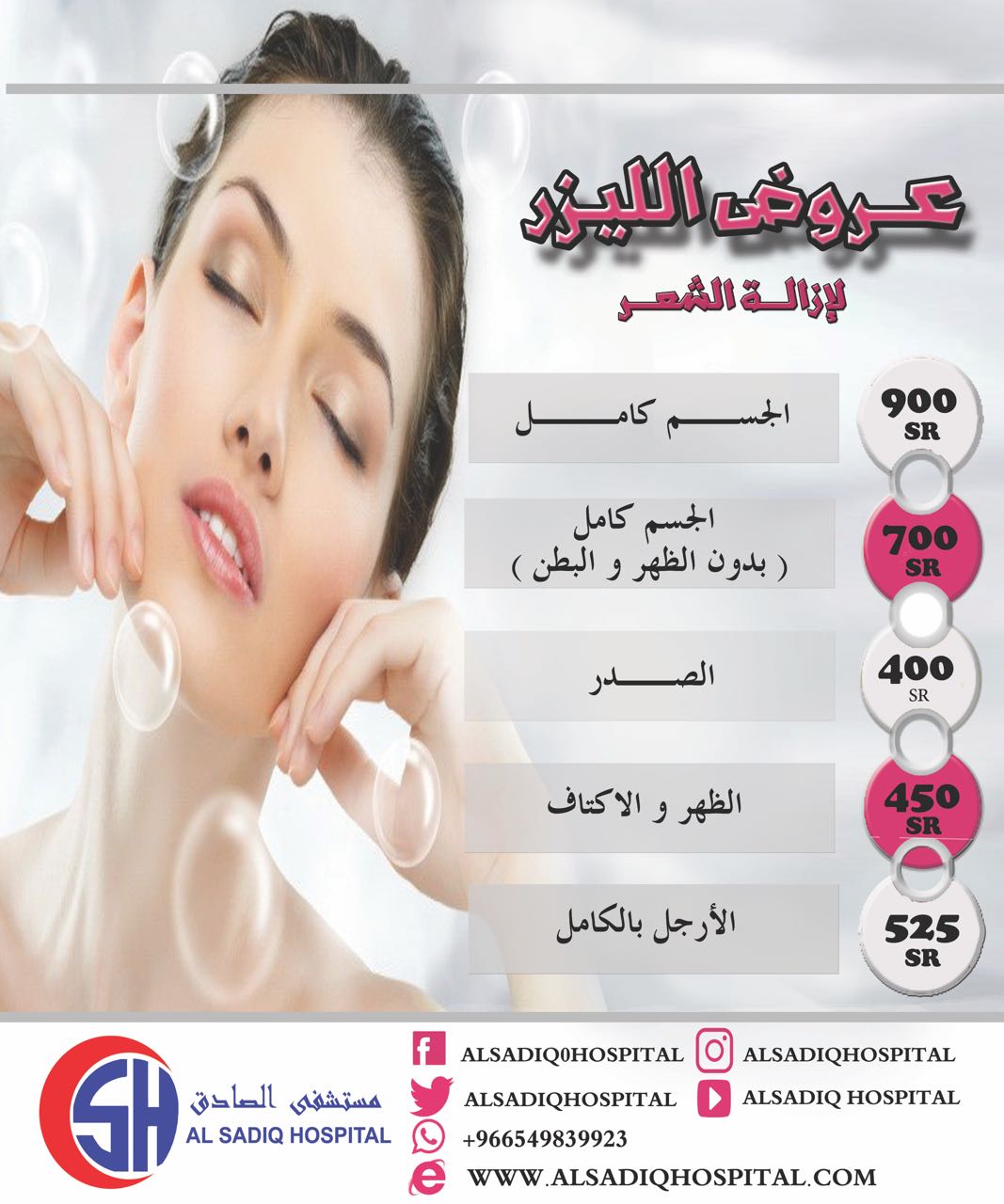 عروض بأسعار هائلة على ليزر إزالة الشعر بأحدث الأجهزة لدى مستشفى الصادق بسيهات