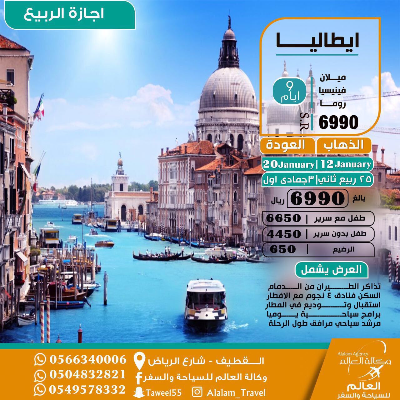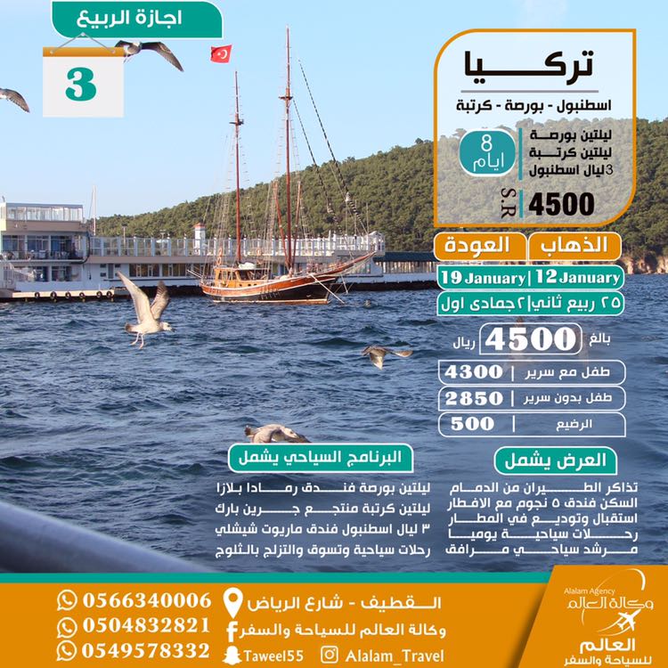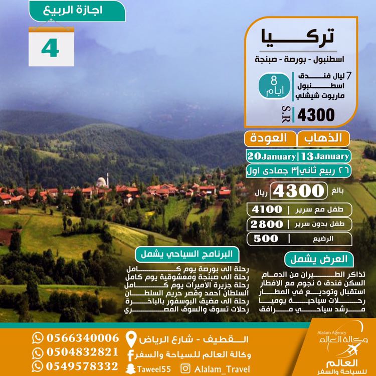 يقدم أفضل العروض الاسبوعية واجازة الربيع لتركيا وايطاليا واذربيجان واندونيسيا وماليزيا وسيرلانكا ومصر🗓