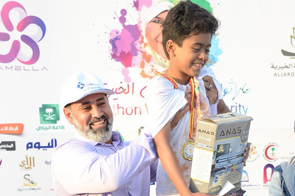 أخذت مشاعر السعادة تسيطر على الطفل أحمد عبدالله الزاير 11 سنة بعد فوزه بالمركز الأول بماراثون الأطفال الخيري بكورنيش القطيف فئة الأطفال ومنسوبي الجمعيات الخيرية بعد ان قطع المسافة في 6 دقائق وسبع ثواني.