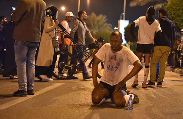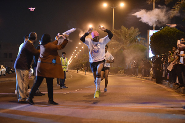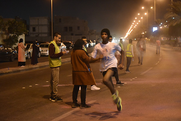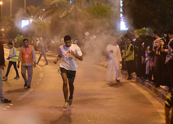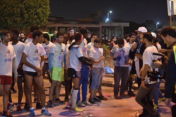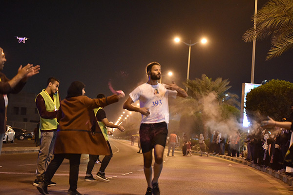 ويشترط السباق للمتسابقين الذي أقيم مساء الجمعة في مهرجان «ماراثون الألوان الخيري» للرياضيين، قطع مسافة خمسة كيلومترات حتى خط النهاية.