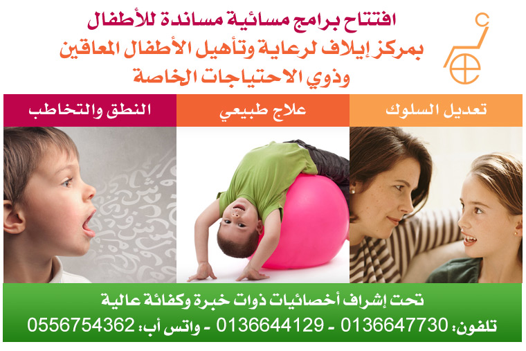 يسر مركز إيلاف لرعاية وتأهيل الأطفال المعاقين وذوي الاحتياجات الخاصة أن يعلن عن افتتاح برامج مسائية مساندة للأطفال وتتضمن: