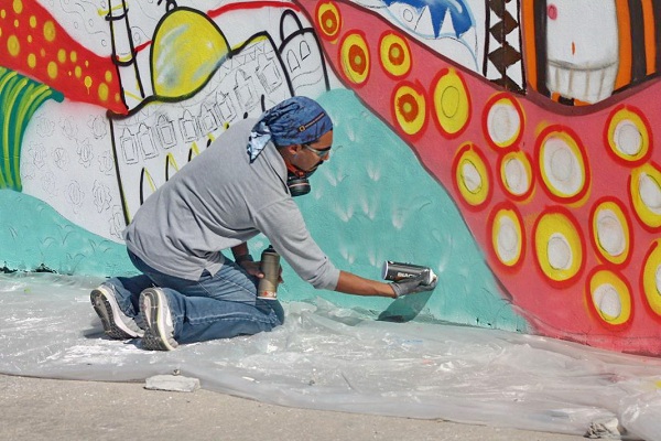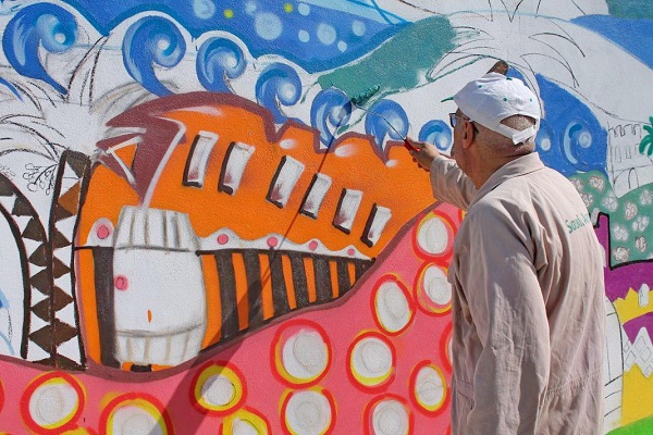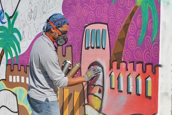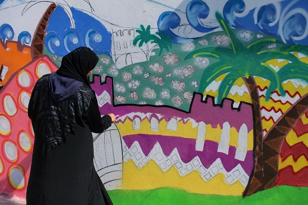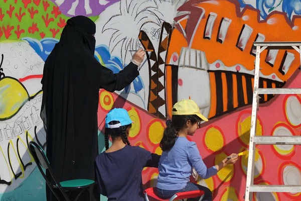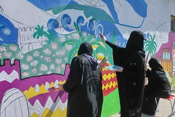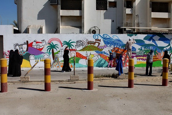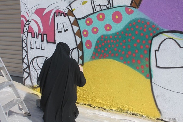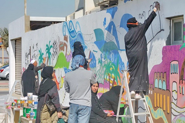 بالصور.. تشكيليات يزين صفوى بجداريات فنية في «ديرتنا ملونة»