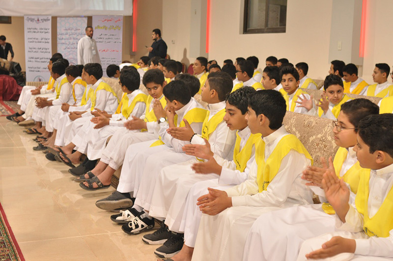 وابتدأ الحفل بتلاوة عطرة للقرآن الكريم من شبل جمعية تراتيل الفجر القرآنية علي خضر الغاشي، تلاه المنشد السيد عبدالرحمن الرفاعي بتواشيح إنشادية إيمانية.