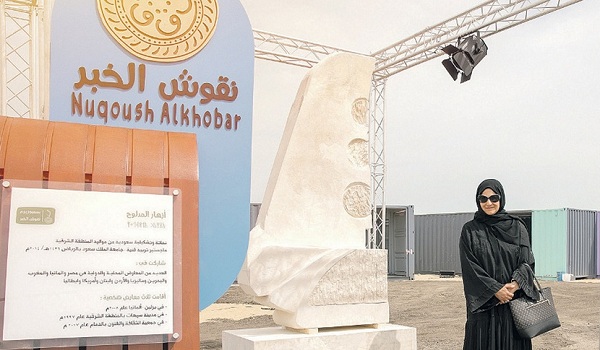 خلال مشاركتها في «سمبوزيوم نقوش الخبر»