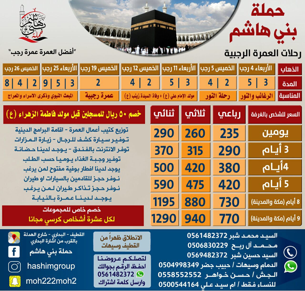 رحلات العمرة الرجبية مع حملة بني هاشم بأنسب الأسعار