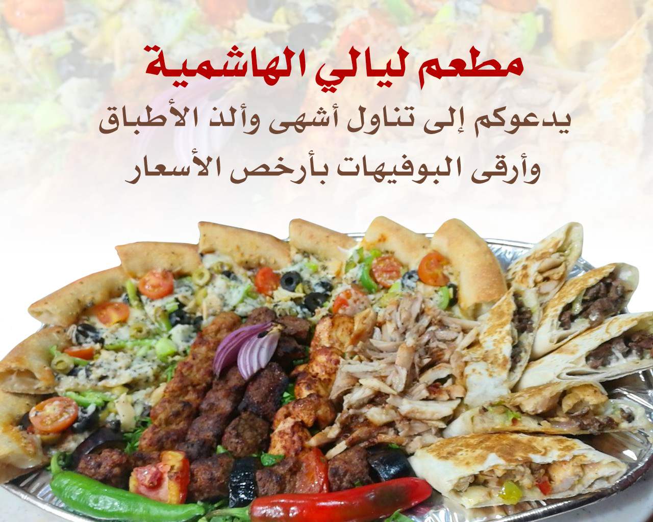 مطعم ليالي الهاشمية يدعوكم إلى تناول أشهى وألذ الأطباق وأرقى البوفيهات بأرخص الأسعار