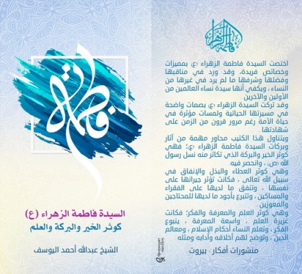 صدر عن منشورات أفكار ببيروت كتاب جديد لسماحة الشيخ عبدالله اليوسف بعنوان «السيدة فاطمة الزهراء كوثر الخير والبركة والعلم»، الطبعة الأولى 1439 هـ - 2018م، وعدد صفحاته 65 صفحة بقياس 11/20 سم.