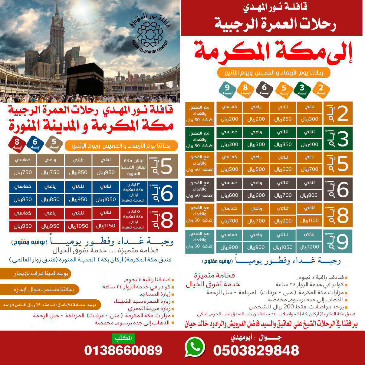 ☎📞☎📞 للحجز او الاستعلام نرجو الاتصال بنا على رقم الجوال 0503829848 او علي رقم الهاتف 0138660089 او بزيارة صفحتنا على الفيس بوك او علي الاسناب او قوقل بأسم (شركة نور المهدي للسفر والسياحة ).