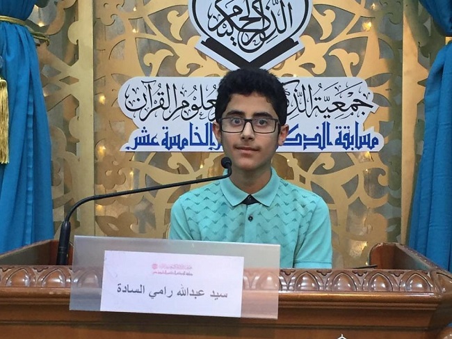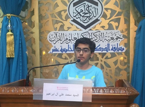 ونال على المركز السادس سجاد المادح في فرع حفظ جزء عّم فيما حصد كل من المركز الثالث محمد ال ابراهيم والمركز الرابع علي الغاشي في فرع حفظ 15 جزء.