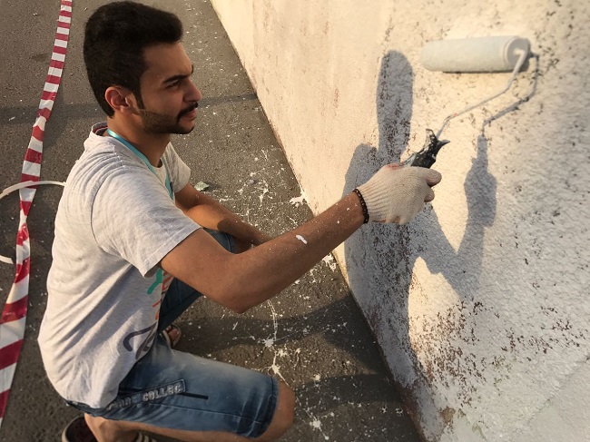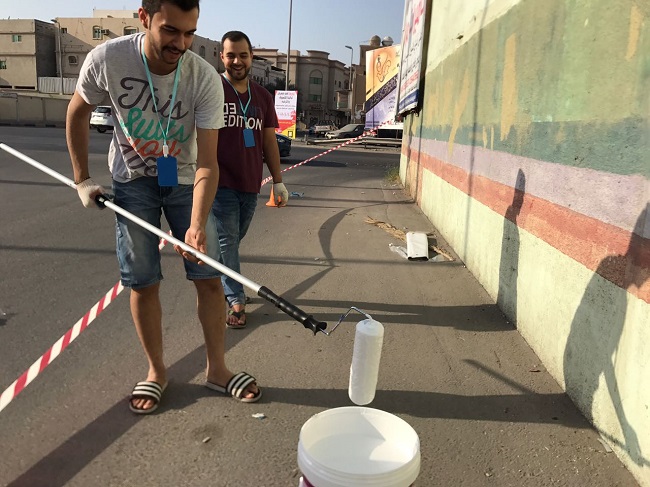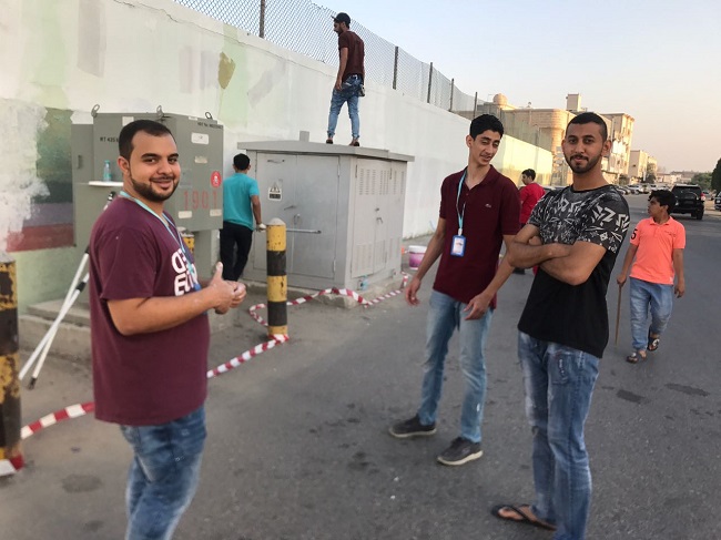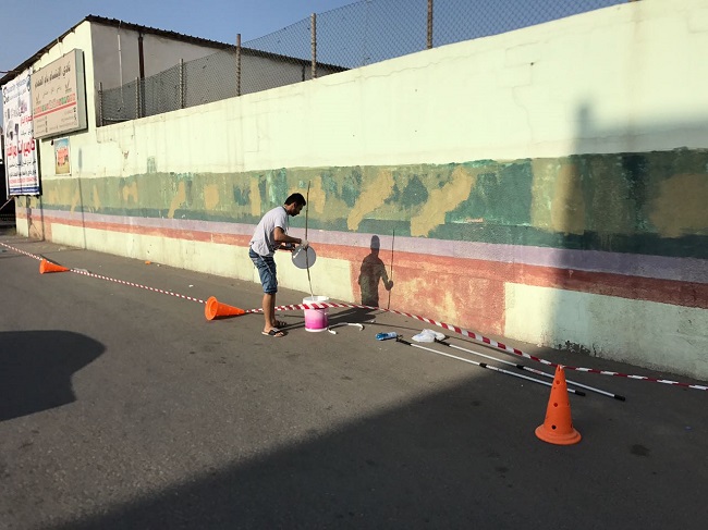وتم الانتهاء من تهيئتها بوضع الطلاء الأساس للجدارية، على أن يشرعوا بالرسم عصر الخميس القادم بمعية 10 فنانون من عدة مناطق ومن المقرر الانتهاء منها خلال خطة عمل 15 يوم.