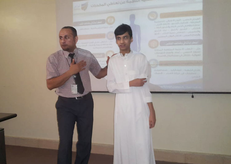 ودرّب الطلاب على كيفية التعامل مع المُروج للمخدرات والمتعاطي لها، بالإضافة إلى العلامات التي تظهر على الطالب المتعاطي.