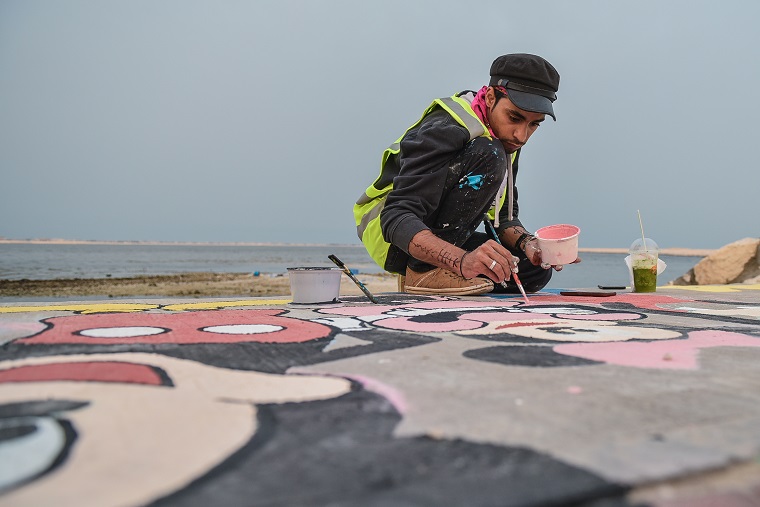 هواة ينقشون حب القطيف بألوانهم على أرصفة الكورنيش.. ويشكرون البلدية