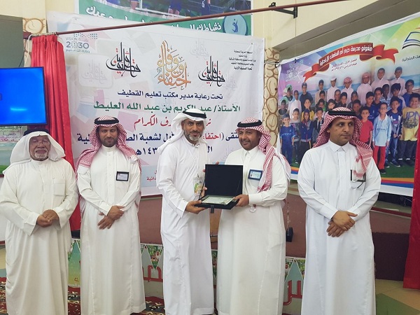 رعى مدير مكتب التعليم بمحافظة القطيف عبد الكريم بن عبد الله العليط افتتاح «ملتقى احتفاء ووفاء الأول للصفوف الأولية بقطاع القطيف 1438 هـ / 1439 هـ» المنفذ ضحى يوم الخميس بمدرسة حزم أم الساهك الابتدائية.