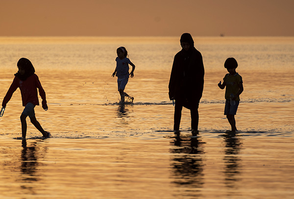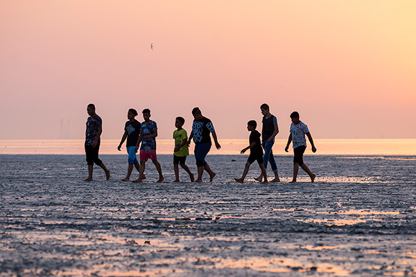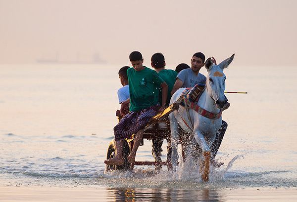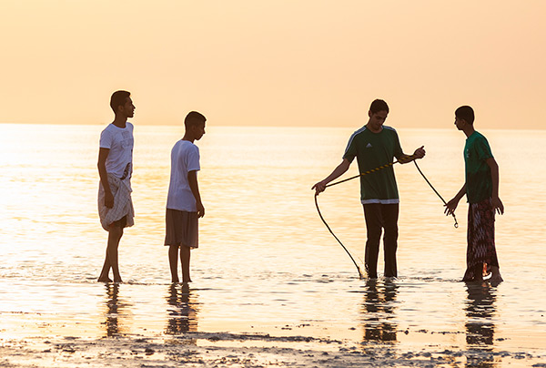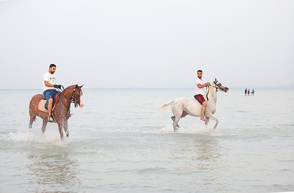ويبدأ رواد الساحل بالتقاطر على الموقع قبل ساعة تقريبا من موعد طلوع الشمس وساعتين من غروبها، حيث يتحول الموقع في شهر رمضان الى منطقة تغص بأعداد كبيرة من الأطفال والنساء والرجال.