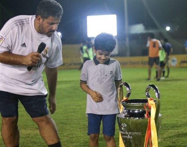 أتاحت اللجنة المنظمة لمهرجان دورة الزواج الخيري الـ «16» بتاروت، الفرصة لمحبي وعشاق فريق ريال مدريد الاحتفاء بتحقيق الفريق الاسباني للقب دوري أبطال أوروبا للمرة الثالثة عشر في تاريخه، وذلك من خلال احضار نسخة مشابهة للكأس الحاصل عليها، والتصوير برفقته.