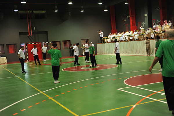 وسبقت المباراة النهائية مباراة ”ودية“ ضمت منتخب هيئة الرياضة في المنطقة الشرقية من جهة، ومن جهة أخرى نزلاء سجن مباحث الدمام والتي انتهت بالتعادل الايجابي ”هدف مقابل هدف“.