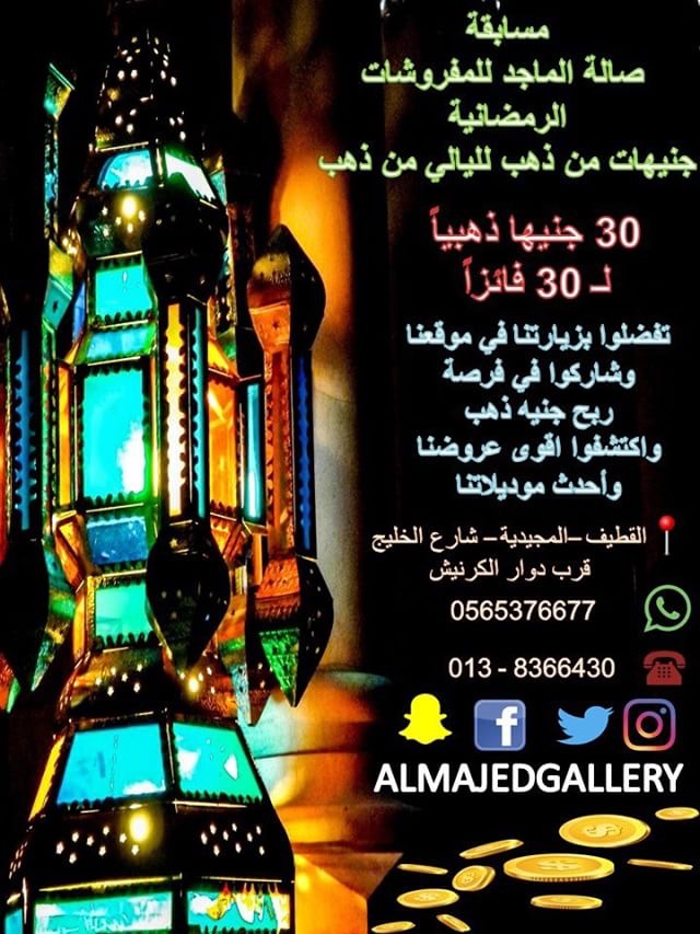 عروض ومسابقة الشهر الكريم لدى صالة الماجد للمفروشات