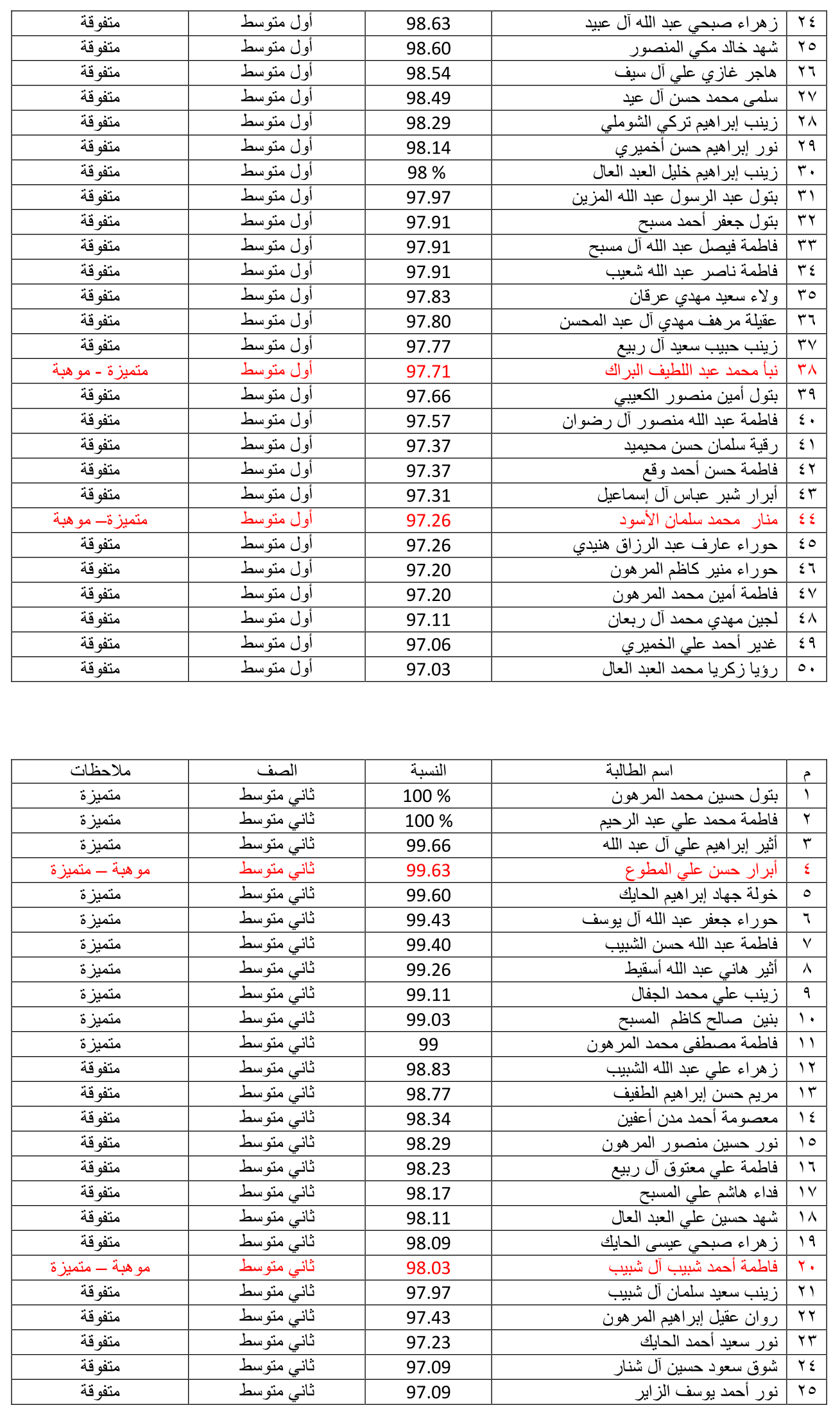 حقق 385 طالب وطالبة من أبناء بلدة أم الحمام نسبة أعلى من 97% للمعدل التراكمي واستحقوا بذلك جائزة التفوق الدراسي بأم الحمام، إنجازاً لمعايير الجائزة التي تم رفعها هذا العام.