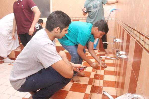 وقدم الشيخ المويس دورة فقهية عن كيفية الوضوء والأحكام المتعلقة به بشكل عملي أمام الطلبة، وقام الطلبة بالتطبيق العملي للوضوء تحت اشرافه مع بقية المدربين.