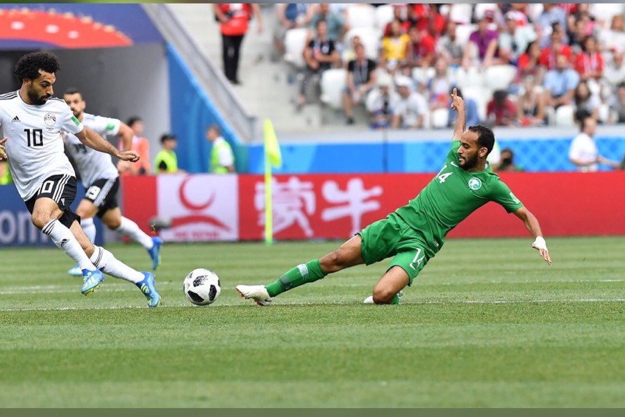 وتقدم المنتخب المصري عبر محمد صلاح عند الدقيقة 21، قبل أن تتعادل السعودية عبر سلمان الفرج من علامة الجزاء في الوقت بدل الضائع للشوط الأول.