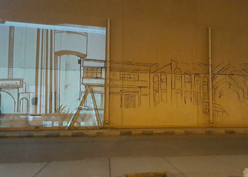 طبع التشكيلي يعقوب الصرنوخ مع مجموعة من الفنانين تراث منطقة صفوى على جدارية بطول 65 متر تنتمي للفن الواقعي ضمن مبادرة «ديرتنا ملونة» بإشراف بلدية القطيف، اعتزازاً بالوطن والعودة بالجيل الجديد للماضي الجميل.