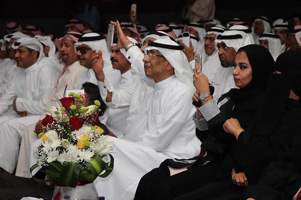 غصت أركان جمعية الثقافة والفنون في الدمام، بجمهور محبي الملحن ناصر الصالح من بعض مناطق المملكة، من ملحنين شباب وشعراء ومطربين، كان التصفيق المستمر حاضراً كل ماذكر اسم المكرم وبعض من ألحانه.