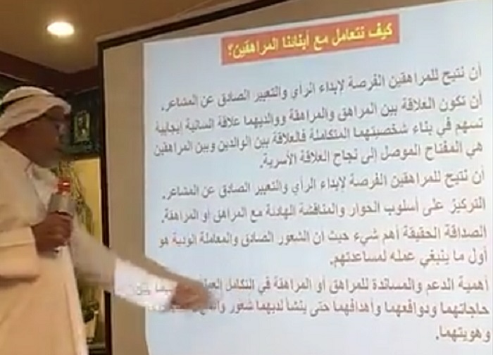 وأكد على ضرورة فهم مشاعر المراهقين ومعرفة النزعات التي تقودهم وتوجه سلوكهم وفي المقابل على الآباء فهم مشاعرهم تجاه أبنائهم وهذا مايقود لفهم أحسن للمراهق وإشعاره بأنه محبوب ومتقبل من الآخرين مما ينعكس على تقبله لذاته واعتزازه بها.