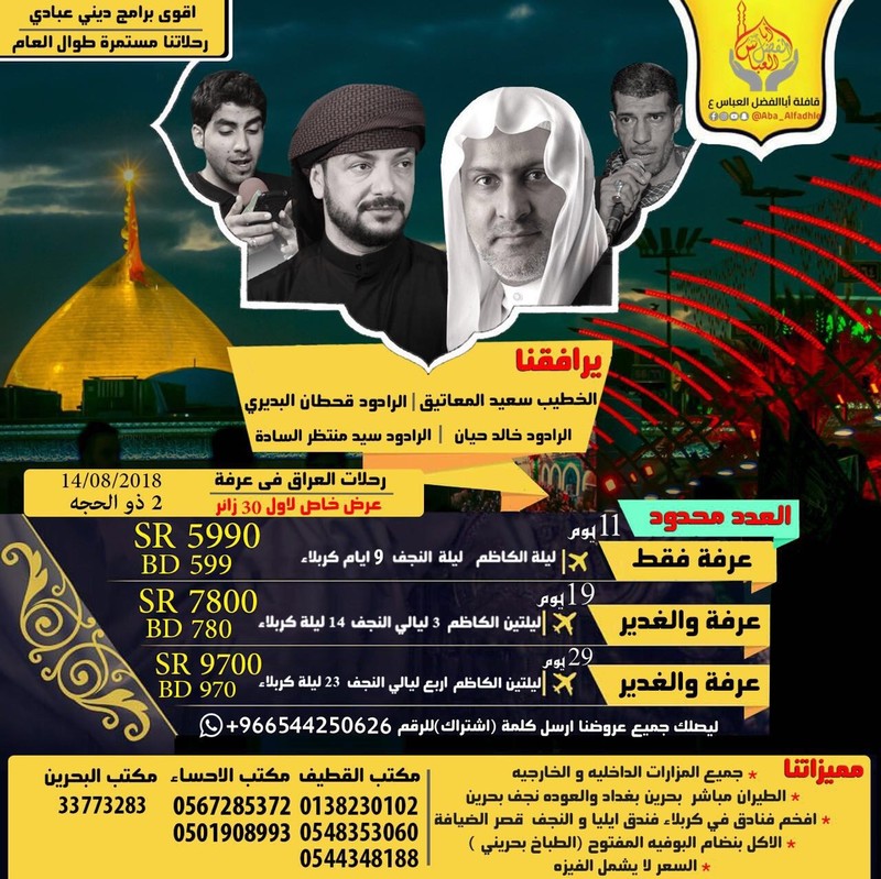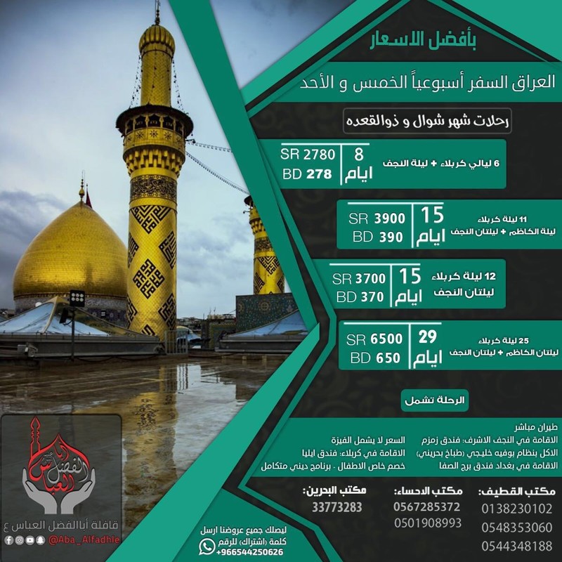 قافلة أبا الفضل العباس (ع) تعلن عن رحلاتها في شهري شوال وذو القعدة وعرفة