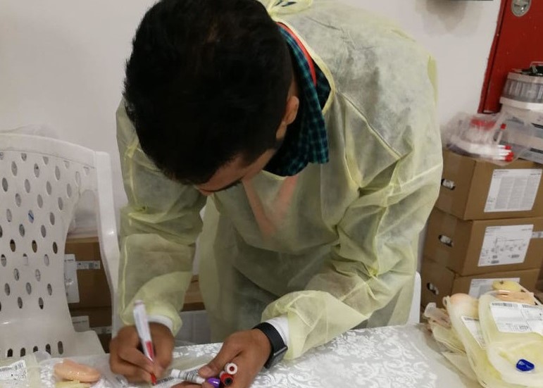 وأشارت إلى وجود استمارات يقوم المتبرعين خلالها بتسجيل المعلومات المطلوبة والإجابة على الأسئلة في نموذج التبرع ومن ثم فحص الهيموجلوبين والعلامات الحيوية، مبينة شرط اجتيازها الذي يسمح بعدها بعملية التبرع.
