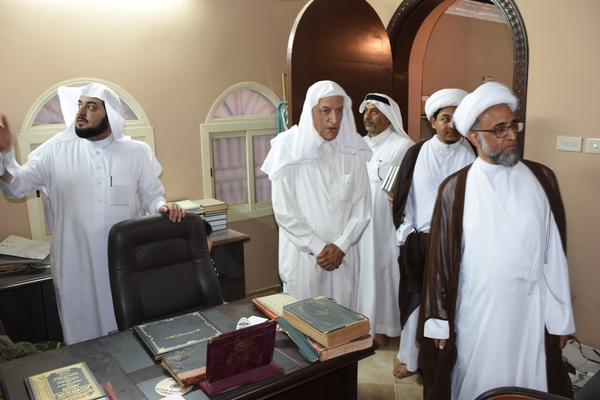 وكان في استقباله القائم على المدرسة والولي على الوقف الشيخ محمد الملا والدكتور الشيخ عبدالإله الملا عضو هيئة التدريس بكلية الآداب بجامعة الملك فيصل.