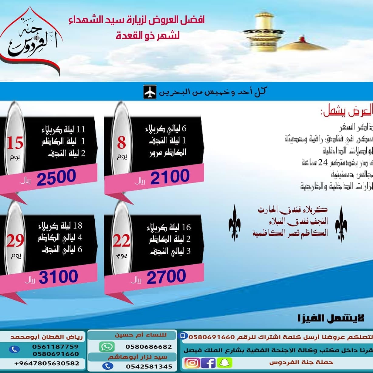 أفضل العروض لزيارة سيد الشهداء لشهر ذو العقدة
