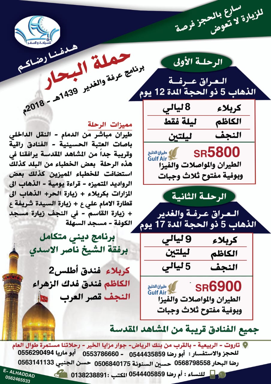 🌅 اعلان الحملة: برنامج رحلة عرفة والغدير 1439