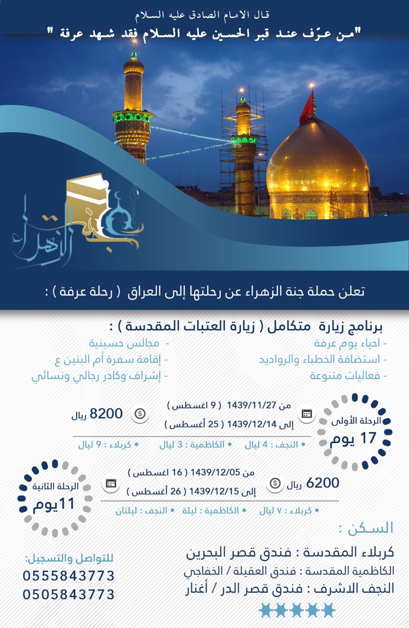 ✨ تعلن حملة جنة الزهراء عن رحلتها لزيارة الامام الحسين عليه السلام (زيارة عرفة)