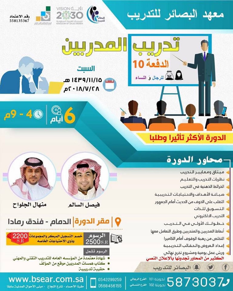 ✋🏻 يسرنا إبلاغكم بتقديم دورة تدريب مدربين TOT في منطقة الدمام🎊