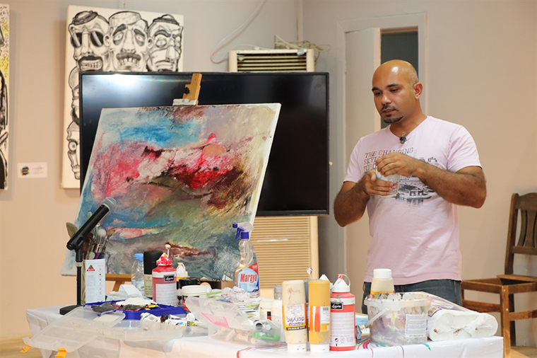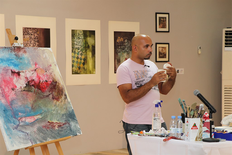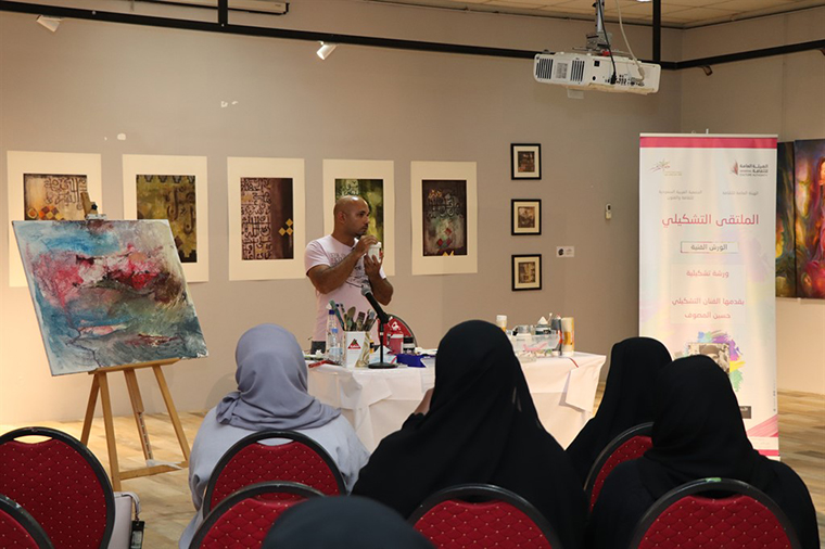 جاء ذلك في الورشة الفنية والتي قدّمها ضمن فعاليات الملتقى التشكيلي أمس الأحد، بتنظيم الهيئة العامة للثقافة، والجمعية السعودية للثقافة والفنون، بمشاركة عدد من الفنانين التشكيليين، بقاعة عبدالله الشيخ للفنون، بجمعية الثقافة والفنون بالدمام.