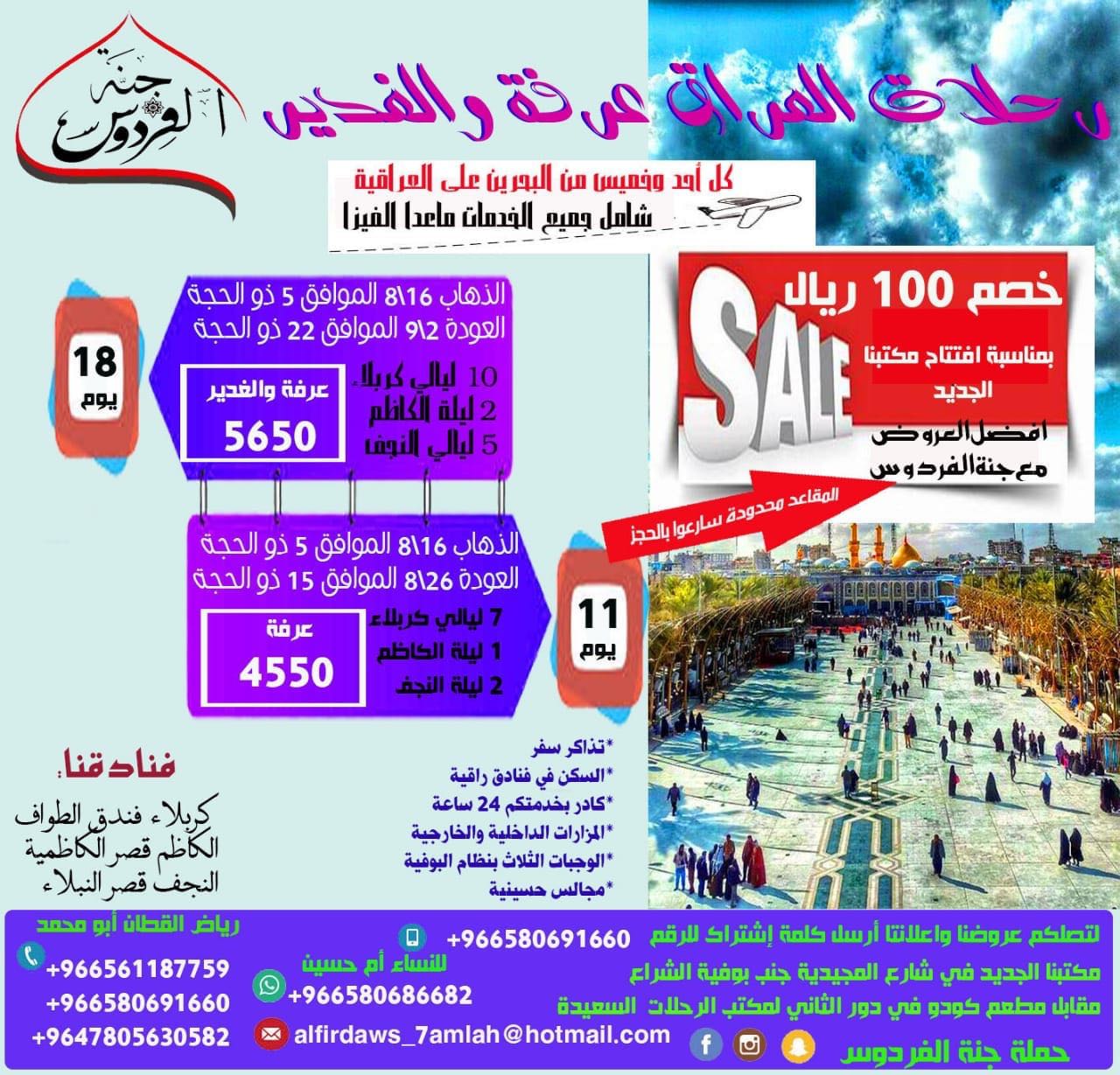 أفضل العروض لرحلات في عرفة و الغدير وخصم 100 ريال بمناسبة افتتاح مكتبنا الجديد