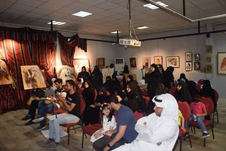 قدّم الفنان محمد المؤمن ورشة لرسم الخيل ضمن أنشطة المعرض والمفتتح الخميس الماضي ويستمر حتى الأثنين لمجموعة «فن يحكى»، في قاعة عبدالله الشيخ بجمعية الثقافة والفنون، يوم أمس.