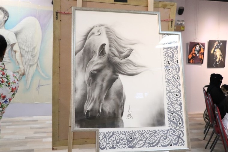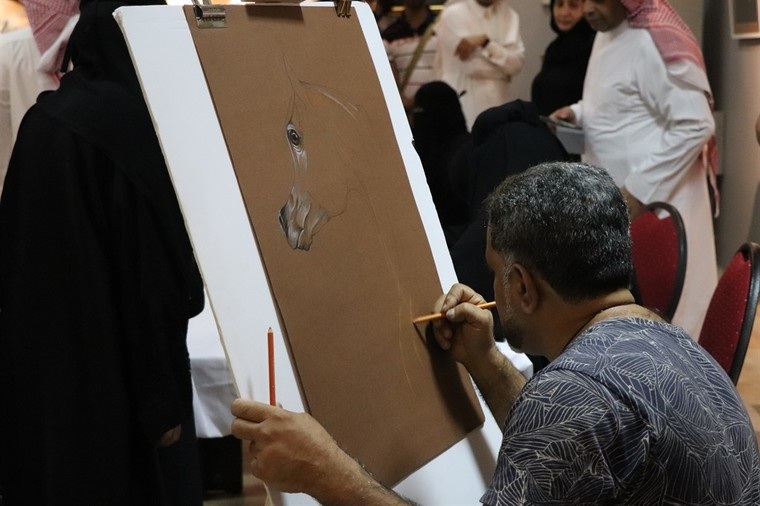وشارك الفنان مصطفى القويعي في رسم الخيل على ورقA4، في مسابقة شاركت فيها أربع فنانات في المعرض حيث فازت لوحته بالمركز الثالث، بينما فازت لوحة الفنانة منى السيهاتي من الحجم الكبير بالمركز الأول لعمق التفاصيل فيها.