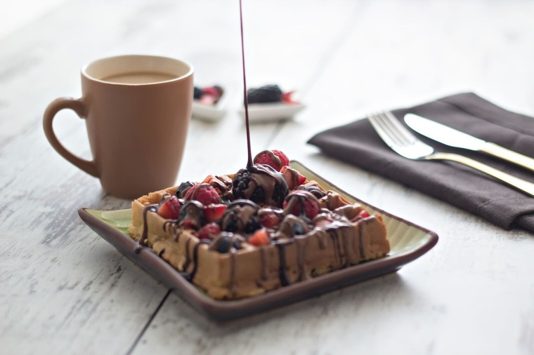 - الوافل: بالخليط المتميز مع الشوكلاته البلجيكية الداكنة والبيضاء وبحسب رغبتك.