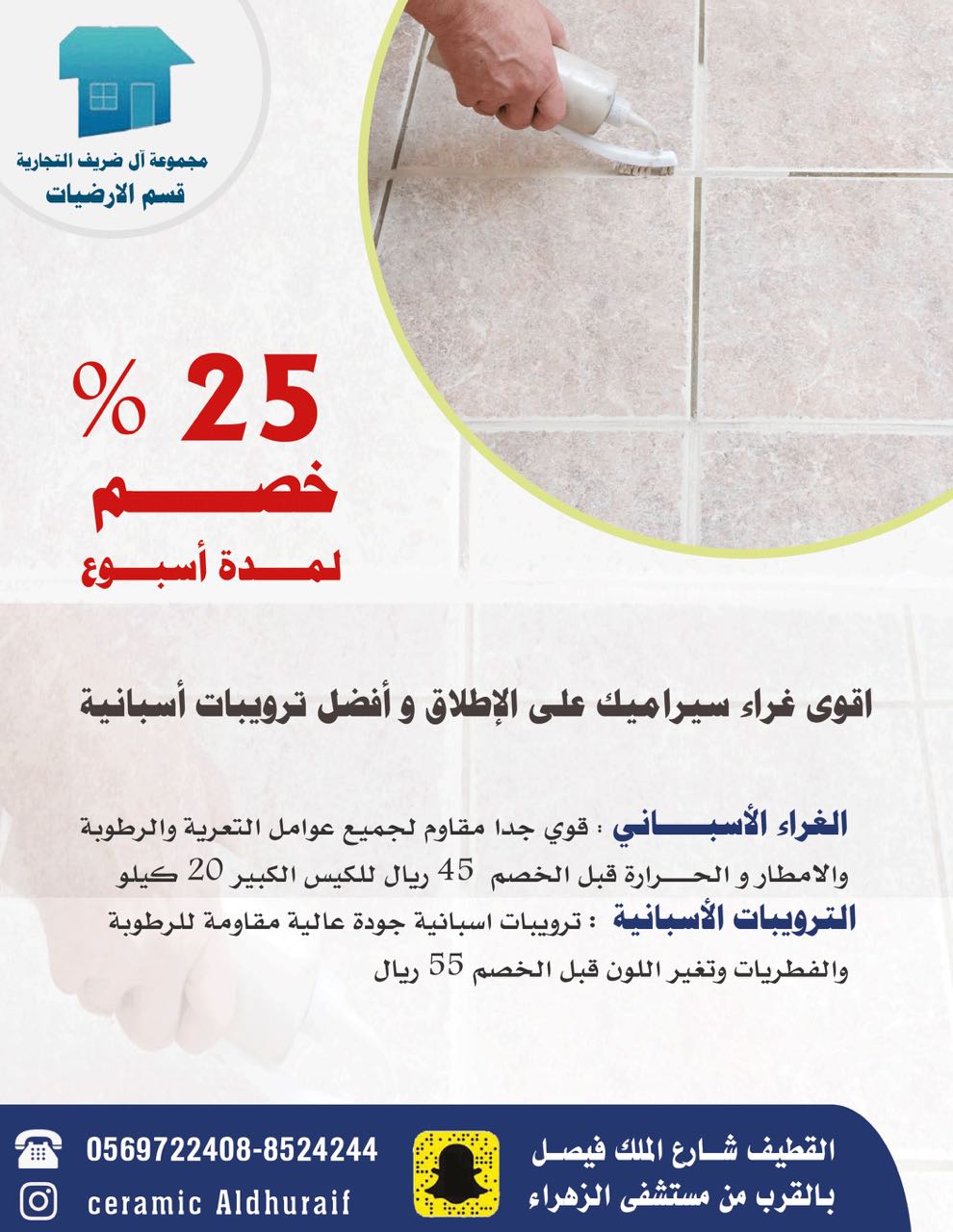 خصم 25% على غراء السيراميك والترويبات الأسبانية