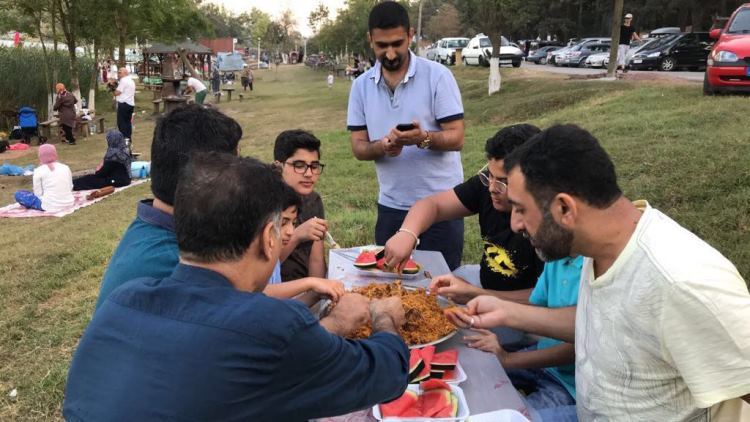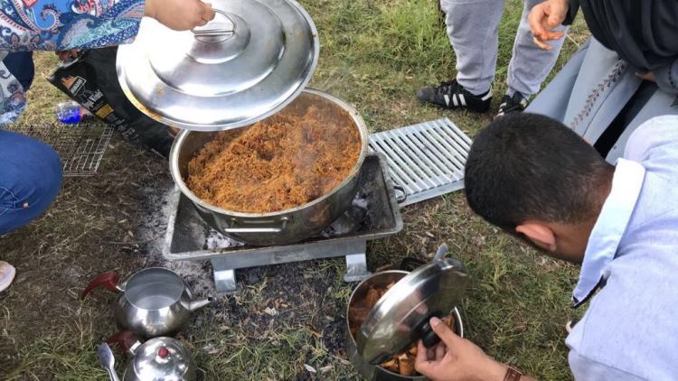 وأشارت إلى أن طهيهم للكبسة كان تحت موقد من الغاز الصغير بمعاونة الأهل والأصدقاء في ثالث أيام العيد في أحد حدائق سبنجة في تركيا، وقالت: ”بعد إن انتهينا من تناول الكبسة، أعددنا الشاي المخدّر على الفحم، فالعيد لايحلو إلا باللّمة وتناول الطعام الشعبي من أيدينا“.