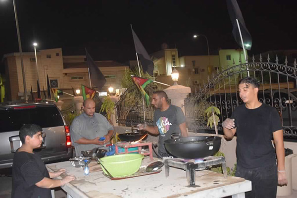 وتشترك مجاميع من الشباب في توزيع الطعام والشراب على المشاركين في المواكب، ويحرص الجميع على تناول شيء من هذا الطعام والشراب تبركا بالمناسبة.