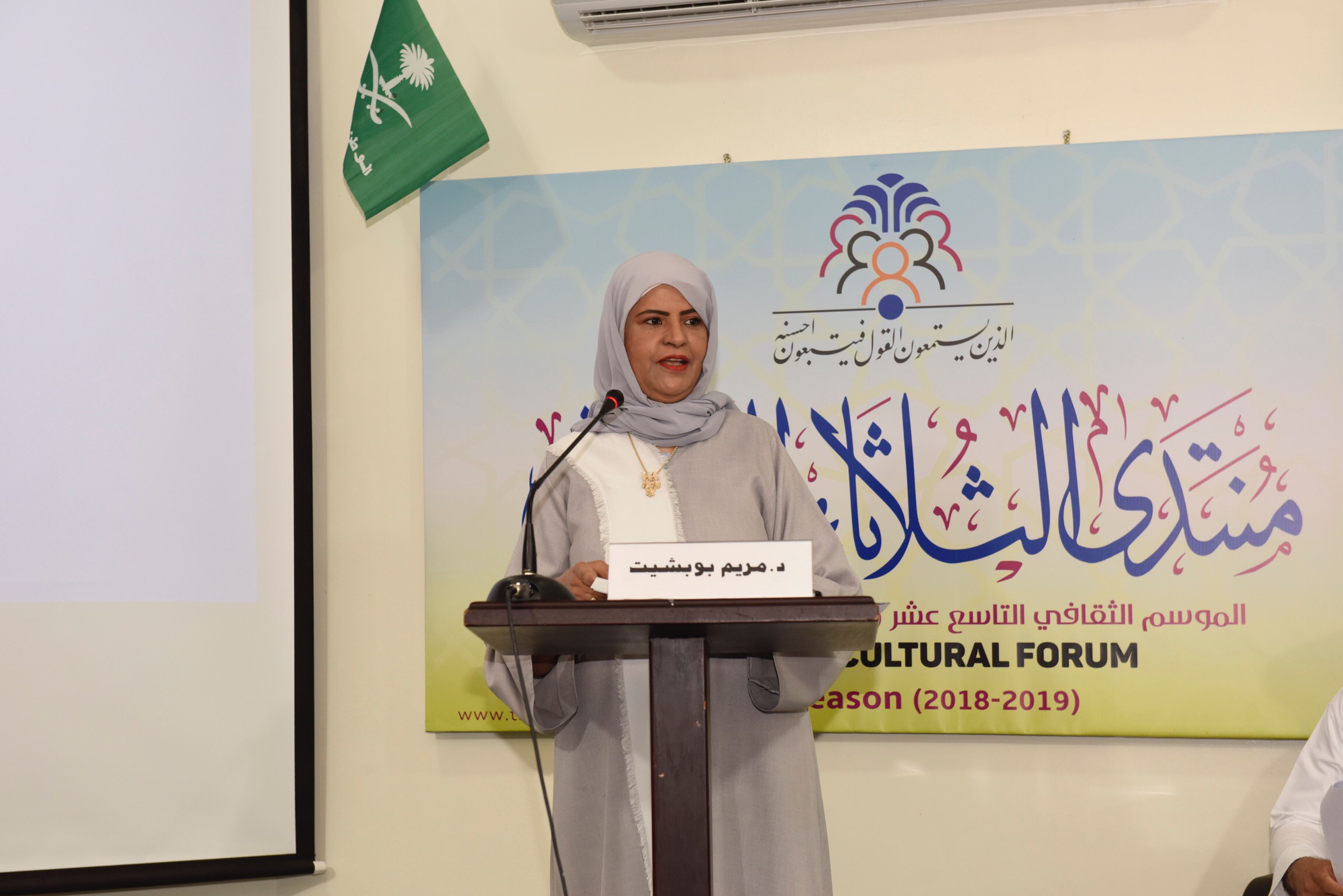 وبمشاعر وطنية جياشة تفاعل الحضور مع كلمات الدكتورة مريم سعود بوبشيت، المشرف العام على مركز مريم بوبشيت للاستشارات التربوية، والتي تحدثت عن نشأتها في مدينة الدمام وتجربتها في التدريس في مدارس القطيف.