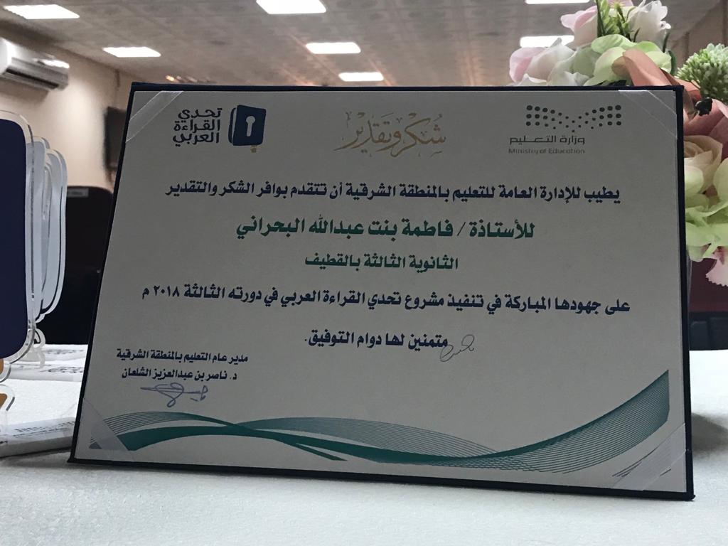 بالأسماء.. تعليم الشرقية يكرم المشاركين في تحدي القراءة العربي من قطاع القطيف