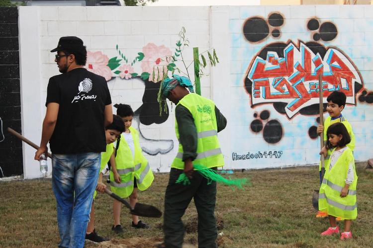 تقدمت سيدة ستينية تقود اولادها وأحفادها للمشاركة في حملة ”نزرعها للنعم بها“ التي أطلقتها أمانة المنطقة الشرقية لتشجير مدن وقرى المنطقة، وتفاعل معها العديد من المواطنين والمواطنات المتطوعين.