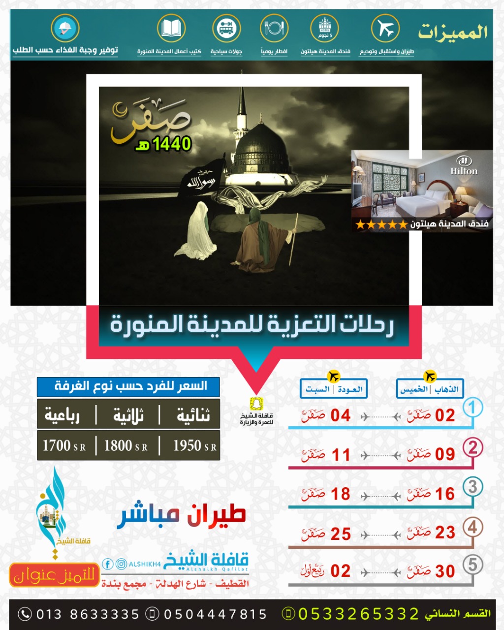 عروض ”قافلة الشيخ“ لرحلات التعزية للمدينة المنورة خلال شهر صفر