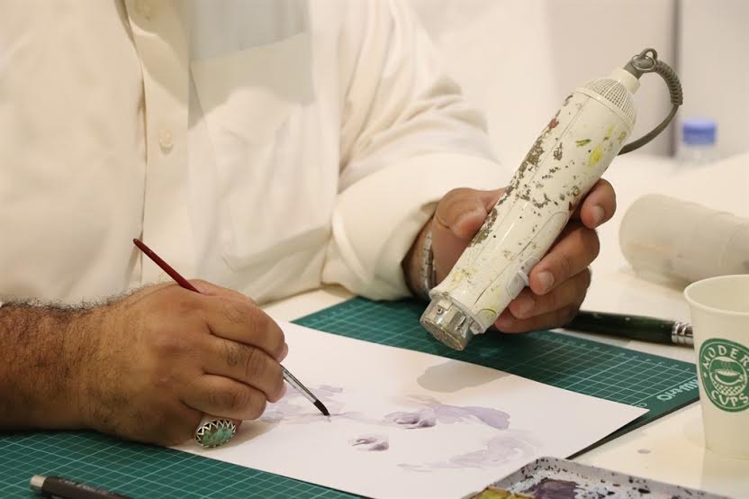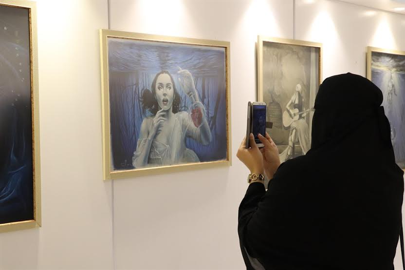 وضم 50 عملا لمدارس فنية متنوعة، مستمراً خمسة أيام يصاحبها ورش يوميه أهمها ورشة للفنان البحريني خليفة شويطر مساء الأحد.