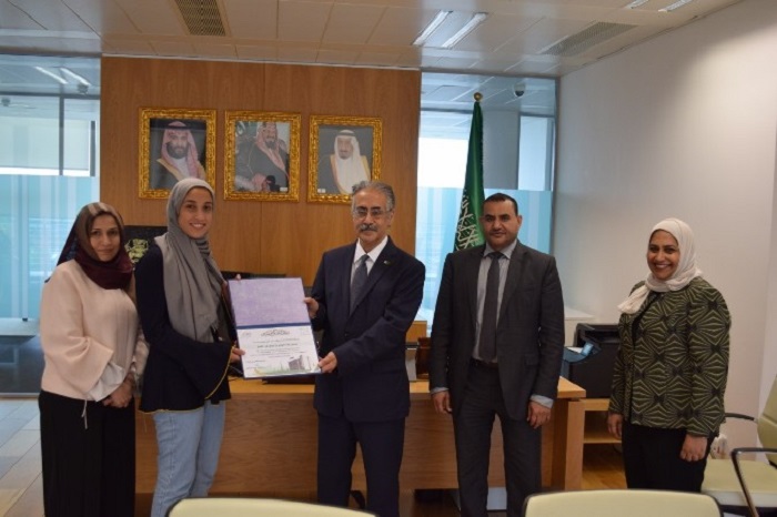 كرم الملحق الثقافي في ”إيرلندا“ الدكتور عبدالله الضلعان الدكتورة لميس آل الشيخ، طالبة بكالوريوس الطب والجراحة، وذلك تقديراً لتفوقها وللجهود التي بذلتها خلال دراستها وحصولها على ميدالية المركز الأول في علم التشريح في الكلية الملكية للجراحين في ايرلندا.